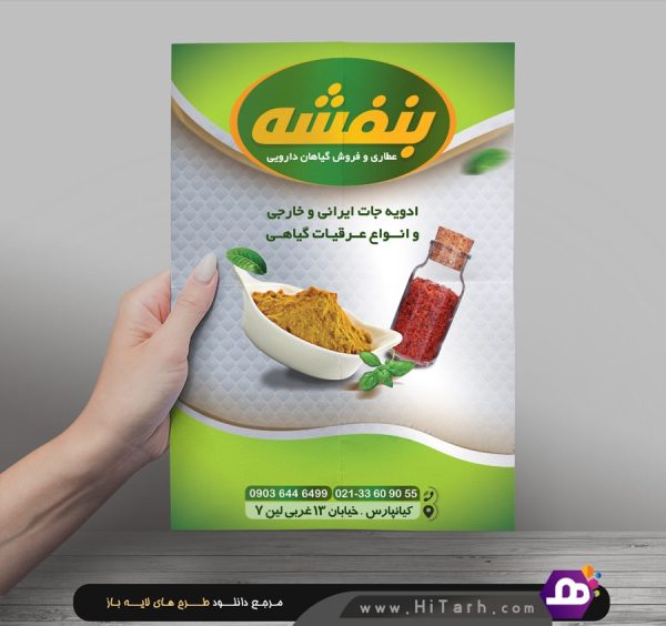 مشخصات طرح لایه باز تراکت فروش ادویه و گیاهان دارویی: